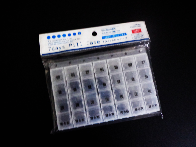 【お勧め度:★★★☆☆】一週間の薬を朝・昼・晩・寝る前と4つの時間帯でわけて管理できるケースです。ひとつずつの入れる箱が小さいのが難点ですが、これで管理しやすいという方には有効だと思います。