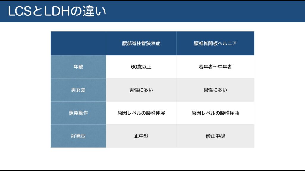 定義:脊柱管が狭くなり馬尾/神経根が圧迫されて症状が出る状態。好発は L4/5>L3/4>L5/S1。