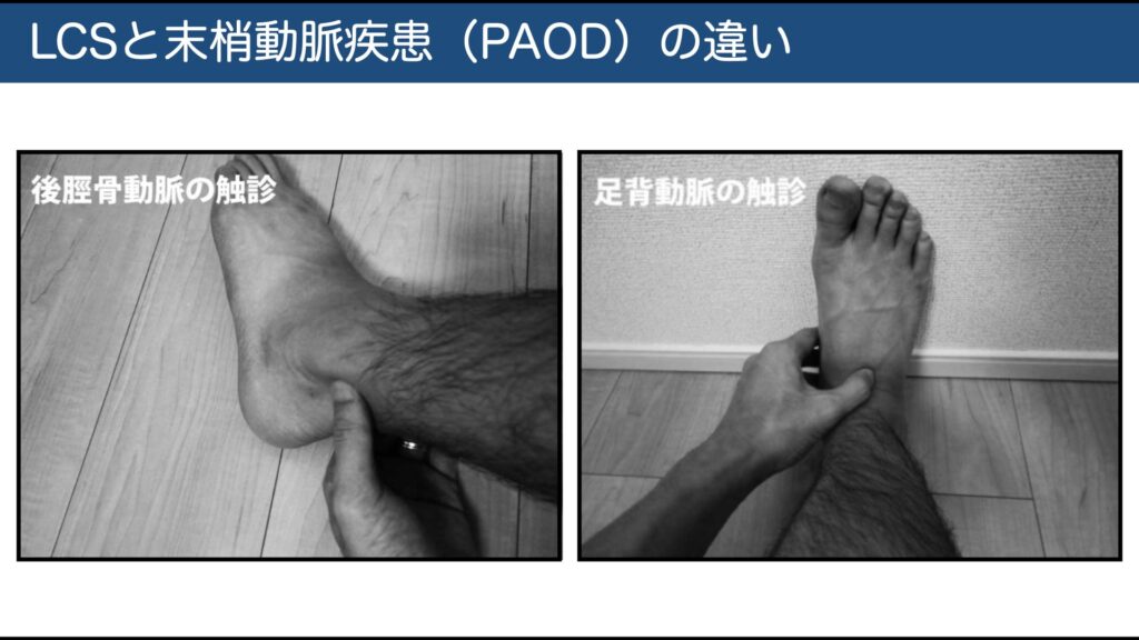 末梢動脈疾患(PAOD):自転車でも早く辛い/足背・後脛骨動脈の拍動↓。ABIで確認。