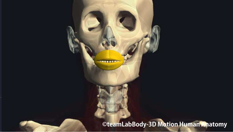 口輪筋(orbicularis oris)は、口を閉じたり、口を尖らせるように作用します。口角下制筋と共同して怒りの表情を作ります。