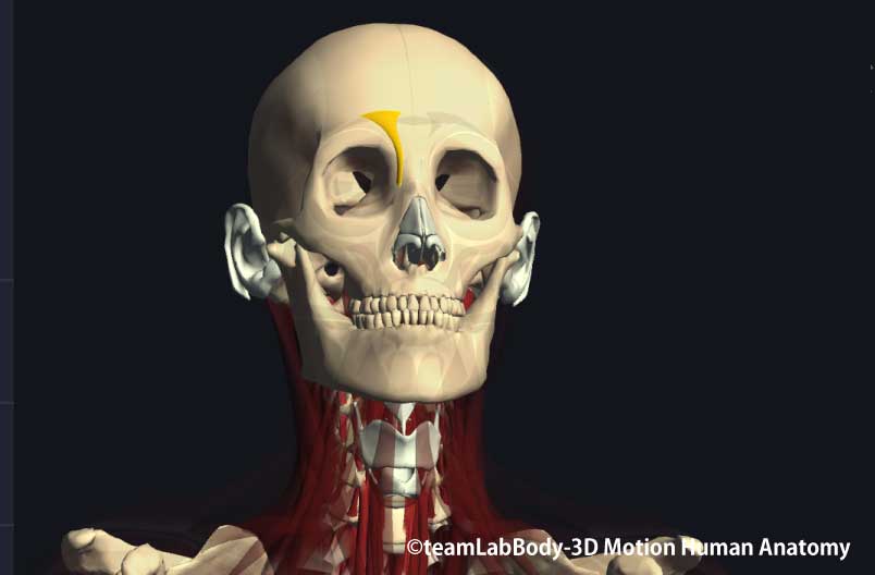 額にシワを寄せるように働き、驚きの表情を作ります。側頭頭頂筋を合わせて頭蓋表筋と呼ばれる場合もあります。