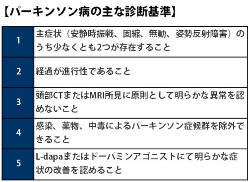 パーキンソン病に対する薬物療法の開始時期は、①症状の程度、②日常生活の不自由さ、③職業を勘案して開始します。