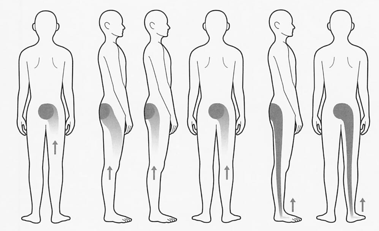 中央化=脚や臀部に広がっていた痛みが、腰の中心へ戻ってくる現象。これが見られれば、その運動は合っている可能性が高い。