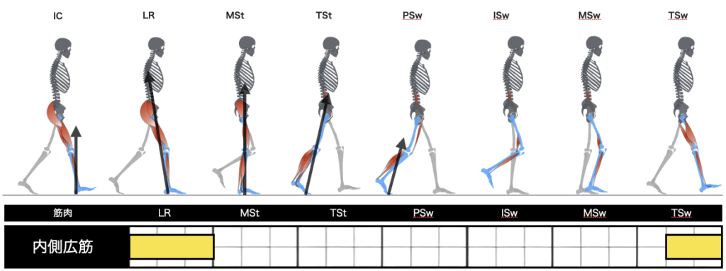 | 動作 | 膝伸展(とくに終末域)、膝蓋骨の内方安定(内方グライド・内傾) |