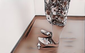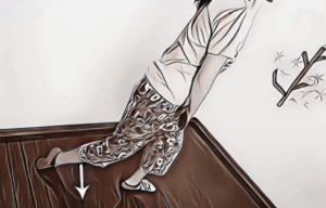 - 後ろ脚のつま先を床につけたまま、足背を下へ押し付ける。