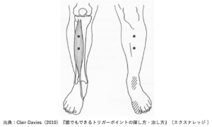 誘因:長時間の歩行・登坂・つま先上げの反復、ランの着地で足関節背屈を繰り返す、固い靴で足首が固定された状態での作業。