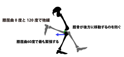 PCLは膝屈曲60度にて最大伸張を示し、膝屈曲0度及び120度で弛緩することが報告されています。