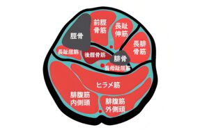 1位:後脛骨筋/2位:長母趾屈筋/3位:長趾屈筋/4位:前脛骨筋