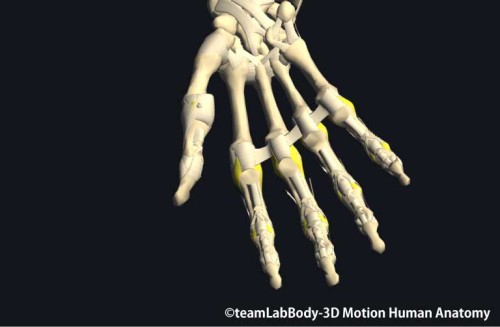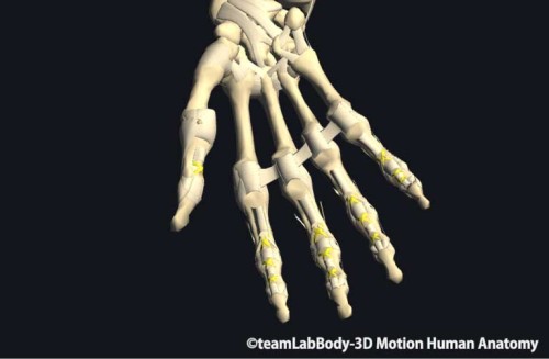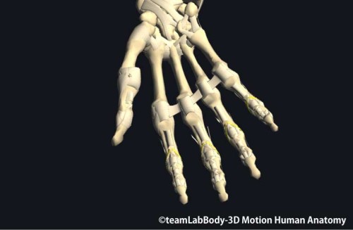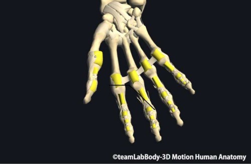 手指の関節はすべて関節包で覆われており、そこに側副靭帯や深横中手靱帯が付着して補強されています。