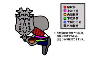 深層外旋六筋=梨状筋・内閉鎖筋・外閉鎖筋・上双子筋・下双子筋・大腿方形筋
