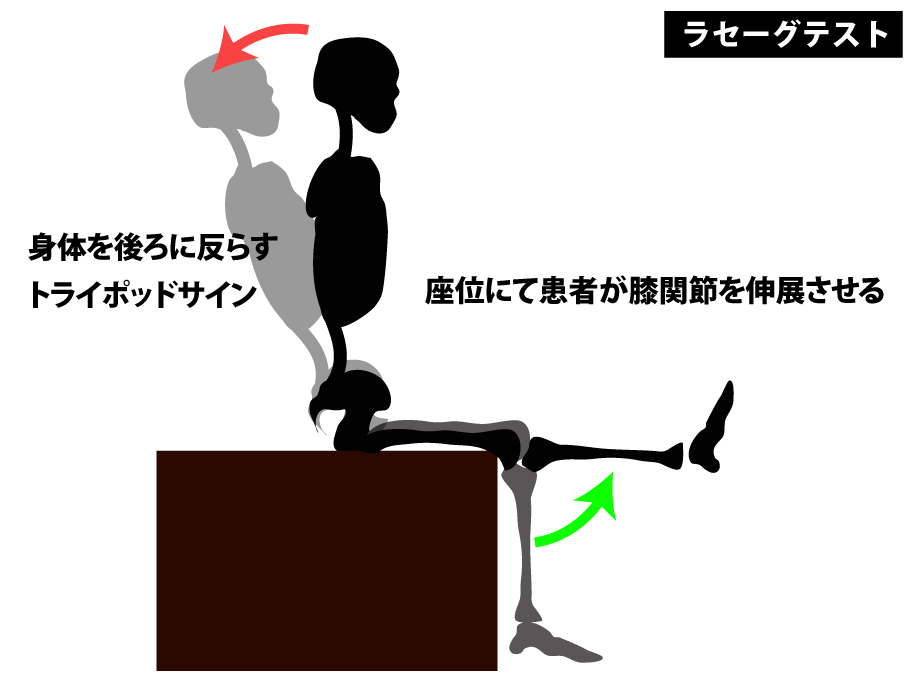 発生機序として、健側の下肢を挙上させると、患側の神経根は内下方へと僅かながらに牽引されます。それにより、神経根の圧迫が強まります。