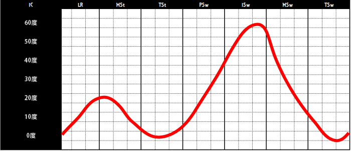 | 膝伸展位 | 立脚相を通じて伸展位 | 大腿四頭筋↑ | |