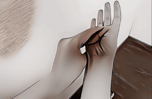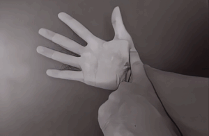 動作:CM内転位→掌側外転(母指を掌に垂直方向へ持ち上げるイメージ)。MPは中間位保持。