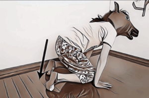 - しゃがみ込んだ姿勢で、足趾をゆっくり伸展。