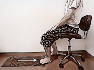 しゃがみ込みが辛い場合は、座位で足趾を手でゆっくり伸展してもよい。20–30秒×2–3回、反動なし。
