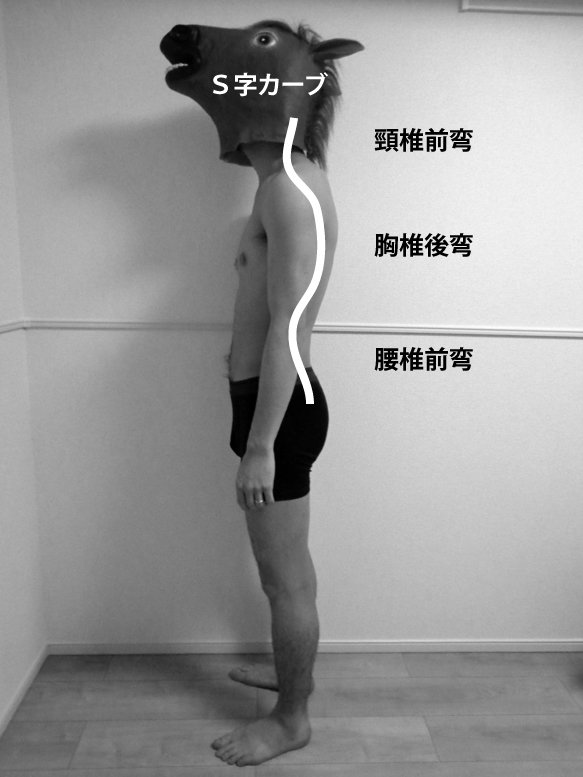 脊柱の正中性:棘突起ラインの蛇行/傾斜の有無