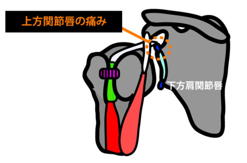 機序:LHBTの遠心性収縮や内旋・水平内転で唇が挟み込まれ刺激。前上方は血流が乏しく難治になりやすい。