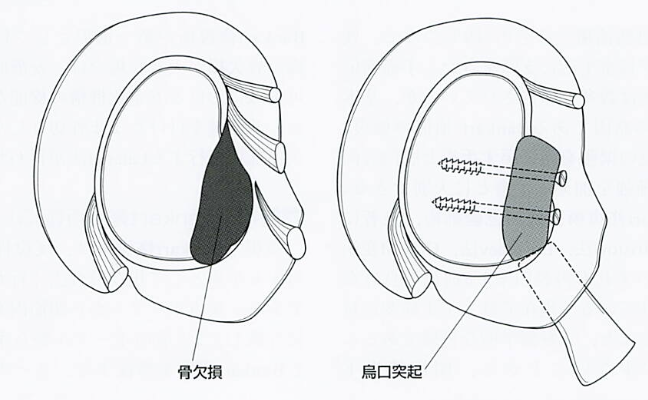 烏口突起を骨片として移行しスクリュー固定。