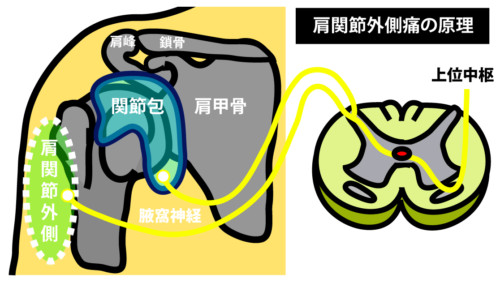 伸張刺激は腋窩神経経由で肩外側痛として誤認されやすい(関連痛)。