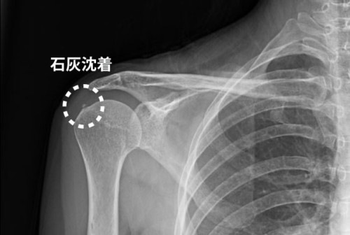 棘上筋腱/棘下筋腱にリン酸カルシウム結晶が沈着。急性の激痛・夜間痛、可動域低下。
