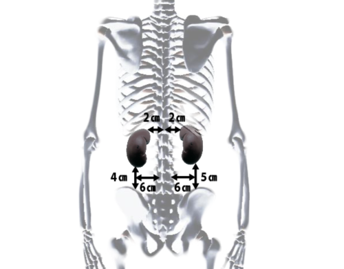 左腎>右腎(左の方が1–2cm高い)。