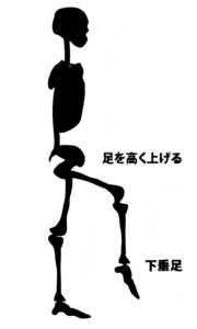 装具を使わない場合、下肢を大きく持ち上げる「鶏歩(steppage gait)」が出現することがあります。