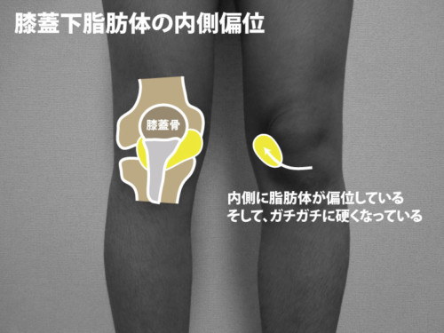 内反(O脚)・下腿外旋・膝蓋骨周囲の拘縮 などで滑走不全→摩擦痛・炎症が起きやすい。