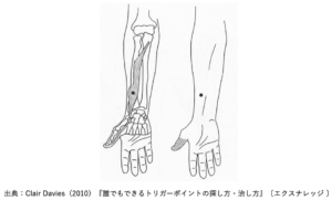 触診の姿位:前腕回外、手関節中間位〜軽度背屈位。