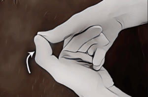 主訴:母指掌側〜IP関節付近の深い痛み・引っかかり感(トリガー母指様)や橈側手関節掌側への放散痛。
