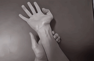操作:反対手で母指を把持し、母指IP・MPを伸展しながら手関節背屈と回外を増大。