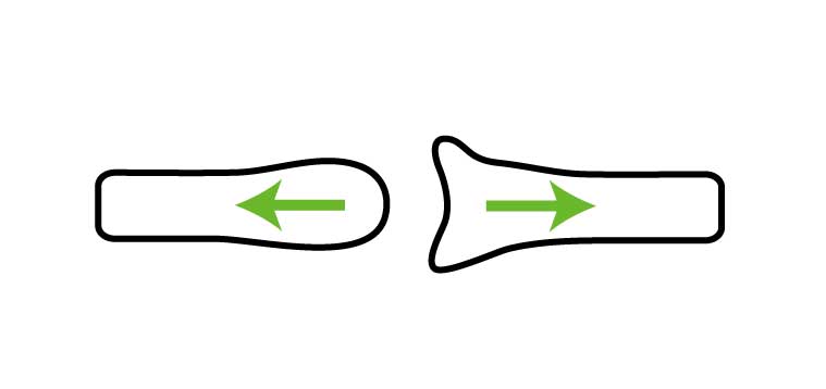 凸側よりも凹側が広い場合に起こる運動で、関節面がズレながら動きます。