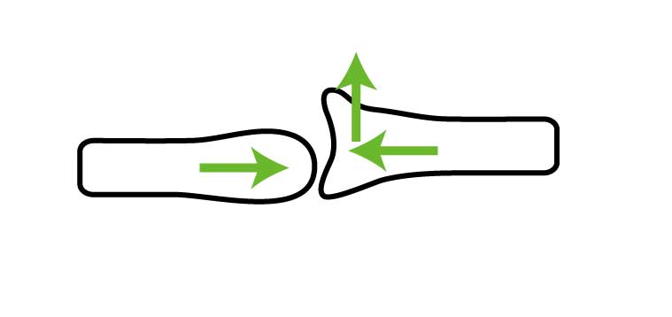 一方の骨を固定して、反対側の骨を水平移動させる方法で、主に「関節包」が伸張されます。