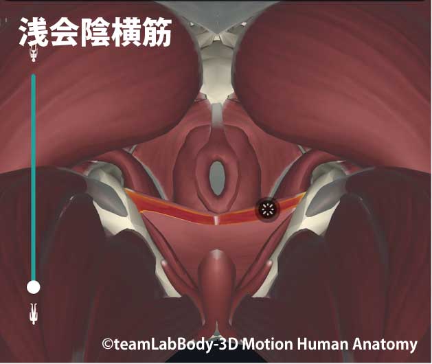 浅会陰横筋/深会陰横筋会陰腱中心(ペリネールボディ)を安定。尿生殖三角の張りと支持を高め、括約筋群の土台を補強。
