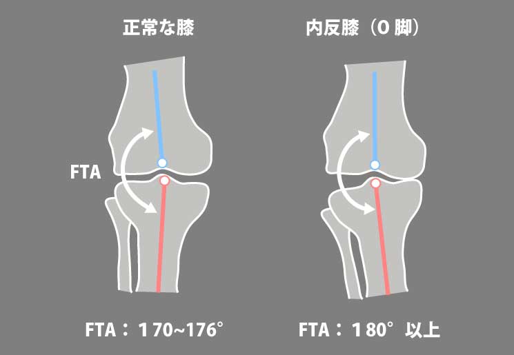 180°以上 → **構造的内反(O脚)**の可能性が高い